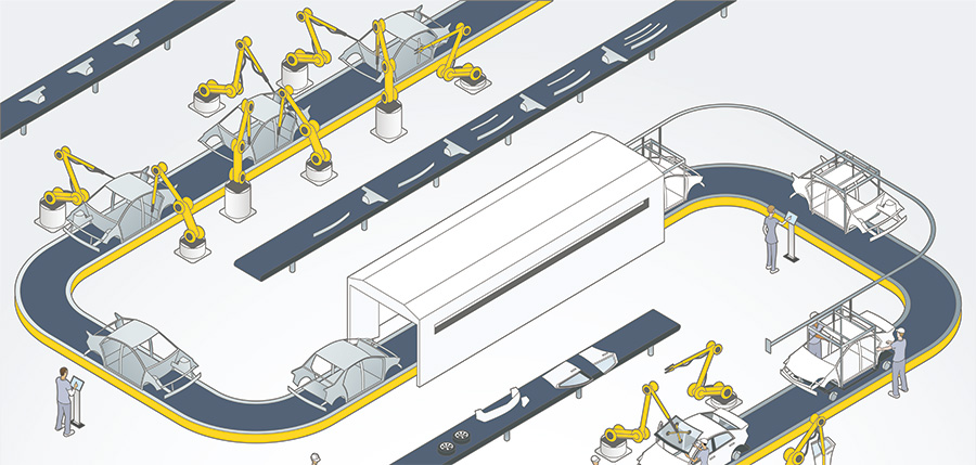 智昌集團通過自主研發(fā)的三元控制技術(shù),面向機器人智能互聯(lián)、協(xié)同融合和群體智能控制,使得自動化裝配線配置產(chǎn)線控制系統(tǒng)LCS和智能化快速換模系統(tǒng),可與MES/ERP系統(tǒng)有效集成,實現(xiàn)生產(chǎn)計劃生產(chǎn)指令直接下達到裝配線,裝配線自動調(diào)用不同產(chǎn)品的控制程序和對應(yīng)的工裝,實現(xiàn)多種產(chǎn)品混線生產(chǎn)。采用3D視覺高精度定位算法、3D視覺高精度糾偏算法等技術(shù),能夠?qū)Χ嗥奉悺o序來料的汽車零部件精準識別抓取及高精度糾偏裝配。同時,裝配線通過LCS系統(tǒng),可實時將生產(chǎn)進度及設(shè)備狀態(tài)信息上傳到MES系統(tǒng),實現(xiàn)閉環(huán)管理。